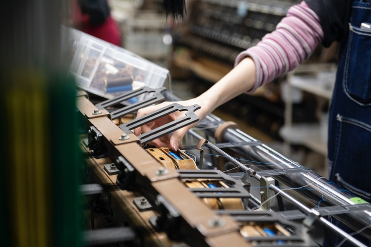 今までは尾州の毛織物メーカーがスーツや重衣料アイテムを産地外の自社工場で生産するケースや、岡山・福山などデニム産地において生地屋と縫製工場の緊密な距離感から生まれた産地内での生産スキームは存在するが、生地メーカー(産元)が産地内で生地から縫製まで一貫で管理するのはとても珍しいケースです。
