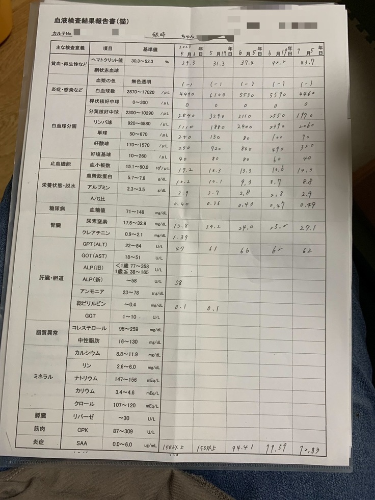 検査結果判明し、猫伝染性腹膜炎(FIP)との診断。
