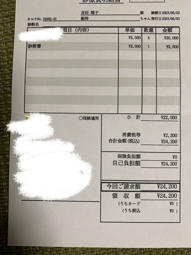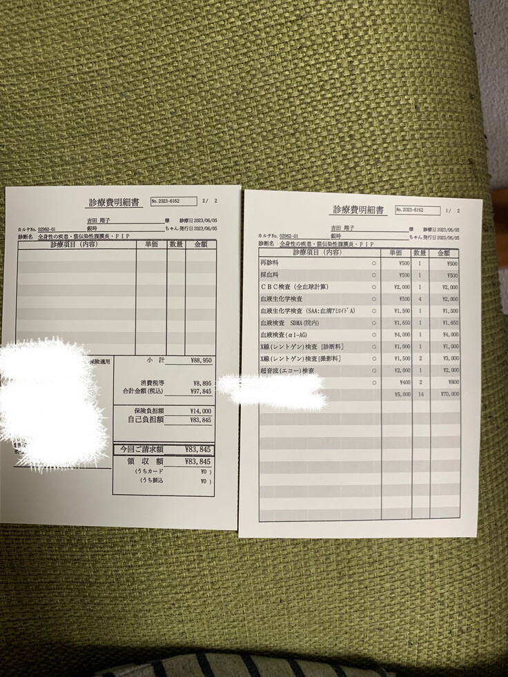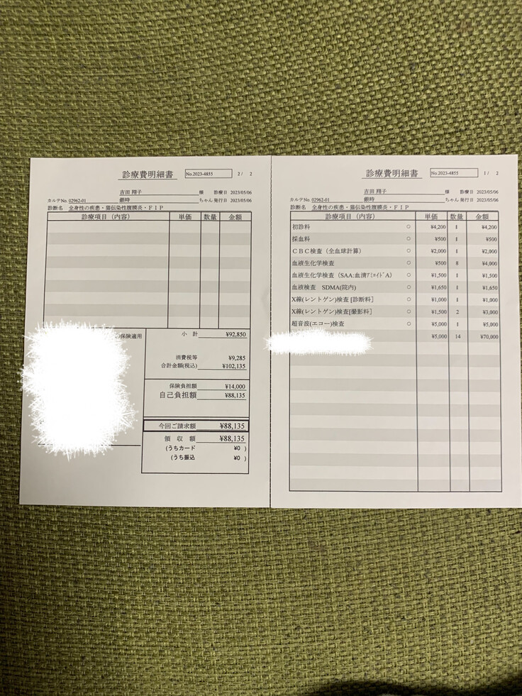 ページ上に掲載している診断書や診療明細書などの資料は全て動物病院から掲載の許諾を得ております。