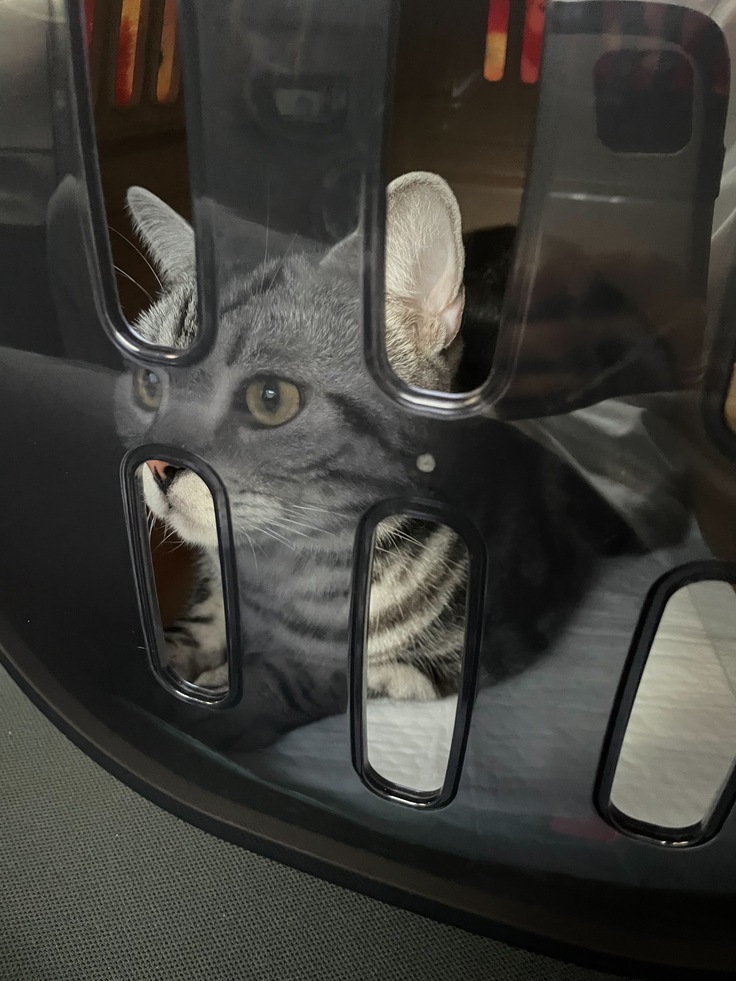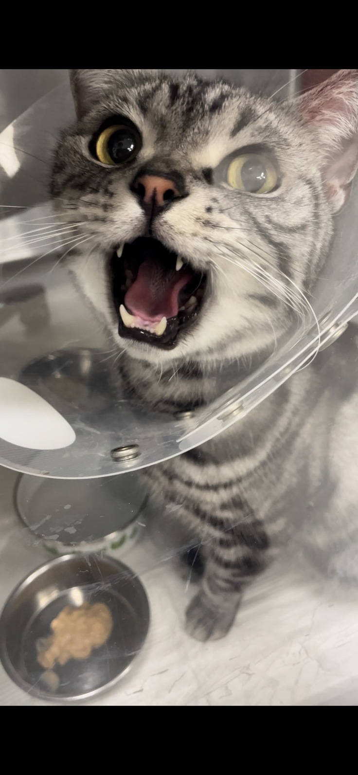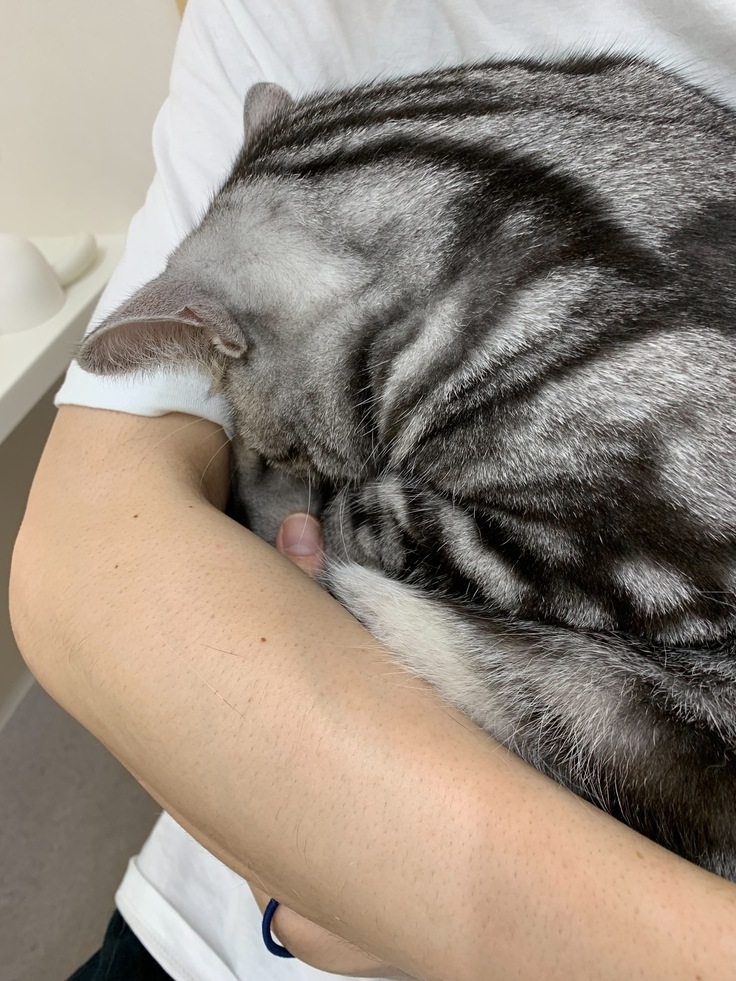 酸素室の中でぐったりしていましたが、匂いや姿で気付いてくれ、元気に甘えてくれました。