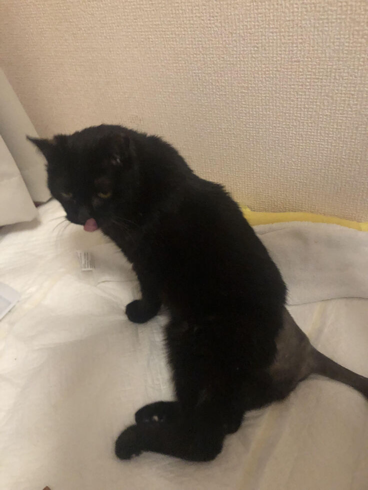 あちこちにシーツを引いたり大変ですが、自力で出せてよかったし、猫のトイレで自分で出来るよ