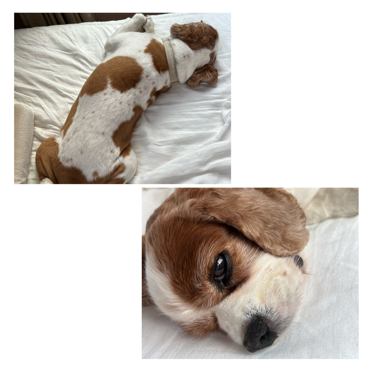 今日は風があって涼しかったので仕事がお休みで疲れきっている風邪気味のママとお昼寝しました💤人間のベッド🛌はフカフカで気持ち良かったワン🐶