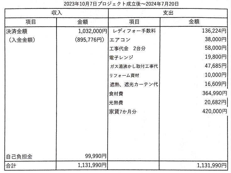 朝、晩ご飯提供時の食材費、光熱費にも活用させていただきました