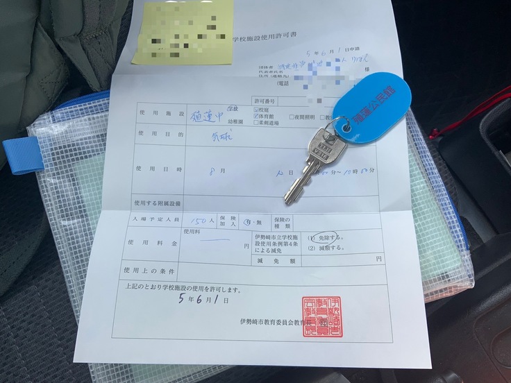 管轄をしている公民館に体育館の鍵を借りてきました。