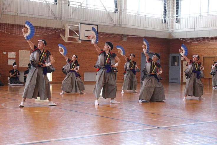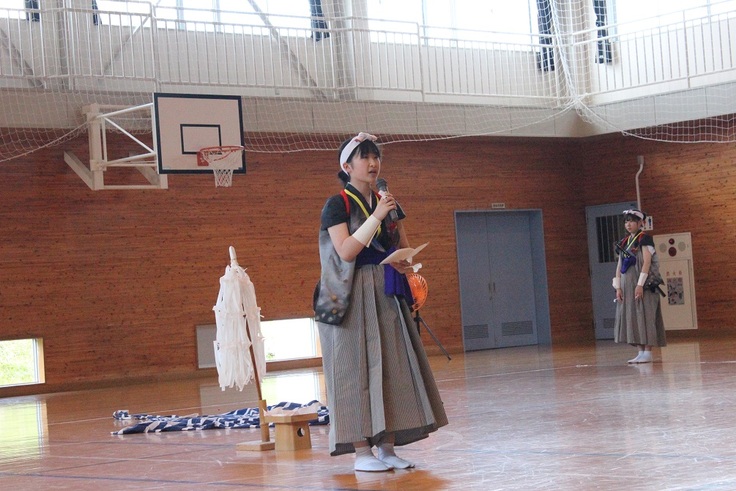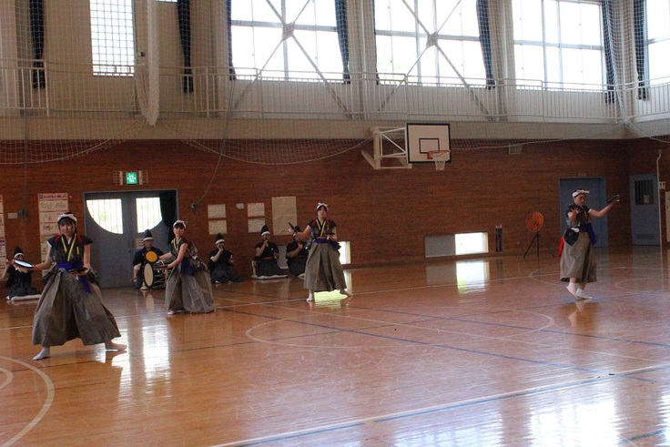 本番さながらの発表の機会を江刺家神楽のおひざもとである江刺家小学校で全校生徒を前に演舞しました。地域の方々も、暑い中たくさん集まっていただきありがとうございます。