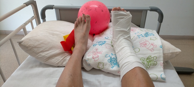 診断結果は、右足関節外果骨折・右第5中足骨基部骨折。
