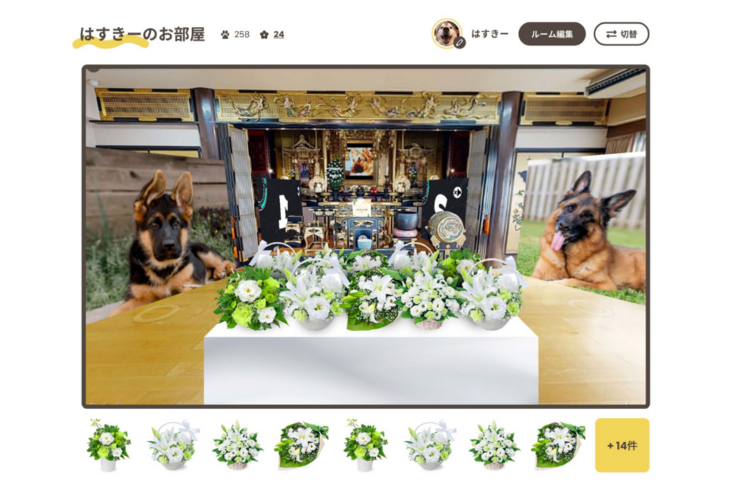 また、祭壇となると暗い空間になってしまいがちですが、ご遺族様のお好きなようにアレンジしていただける明るいメタバースの空間も搭載予定です。