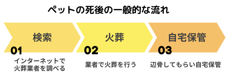 ペットが亡くなってからの一般的な流れは、下記図の通りです。