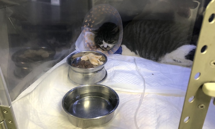 入院当時、地域猫にどこまでしてあげられるのか、とても悩みました。CAT'S INN TOKYOの代表が、「お金のことは後で悩みましょう。まずはこの子にしてあげられる最善の治療をしてきましょう」と、我々を励まし、彼女のコネクションを使って専門病院の意見を聞いてくれ、とらちゃんのために奔走してくれました。