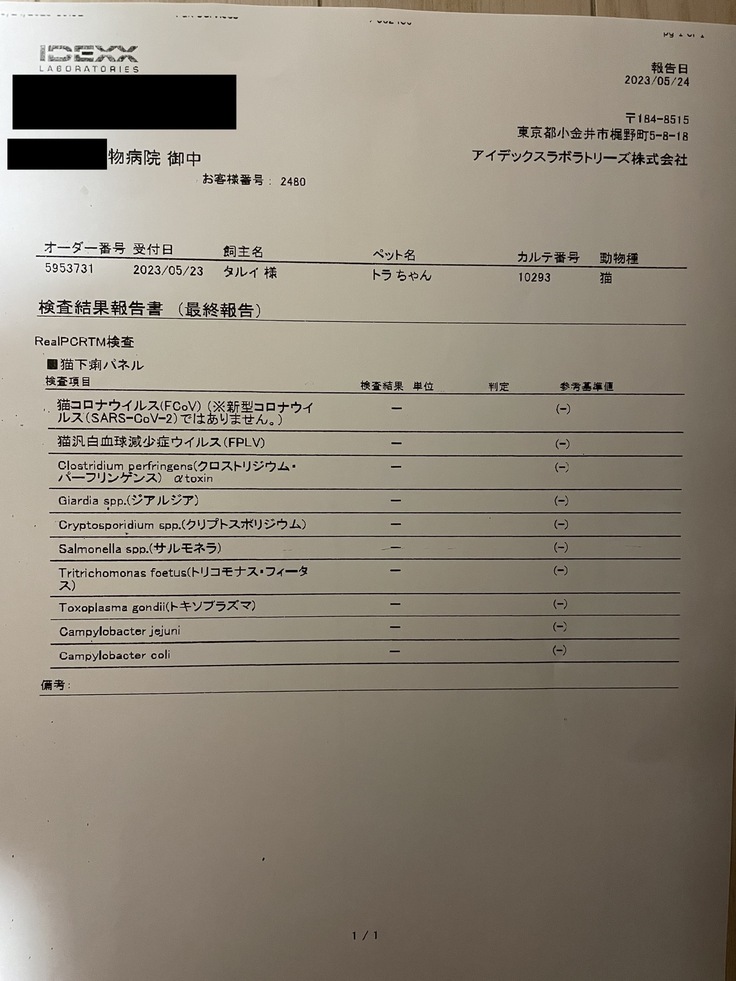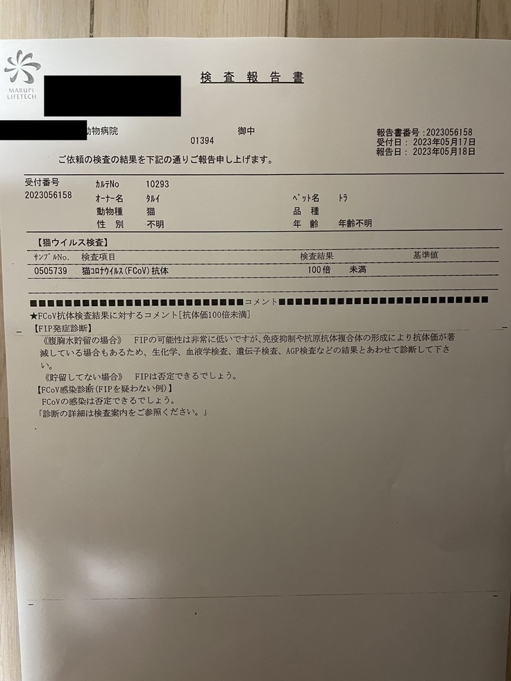 当時はFIPも疑われたため、桁違いに高額の治療費(治療には高額の未承認薬に頼る以外にないため)日々怯えていました。ここでようやくFIPの可能性がなくなってきました。