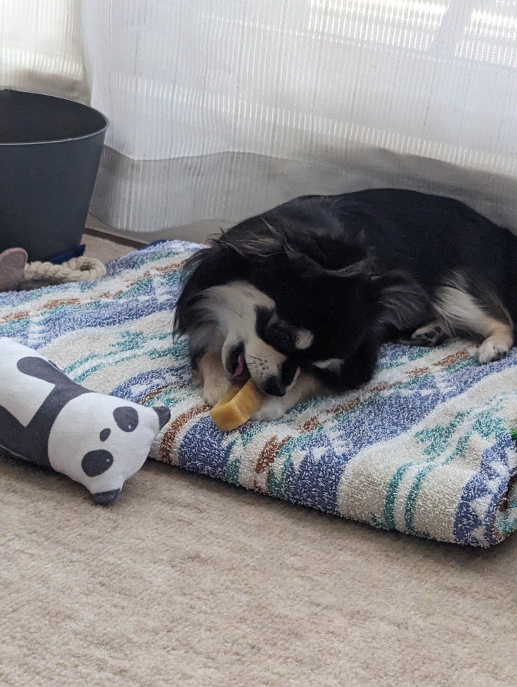 9ヶ月のお祝いに頂いたチーズがお気に入りで、ずっとカミカミしています😊