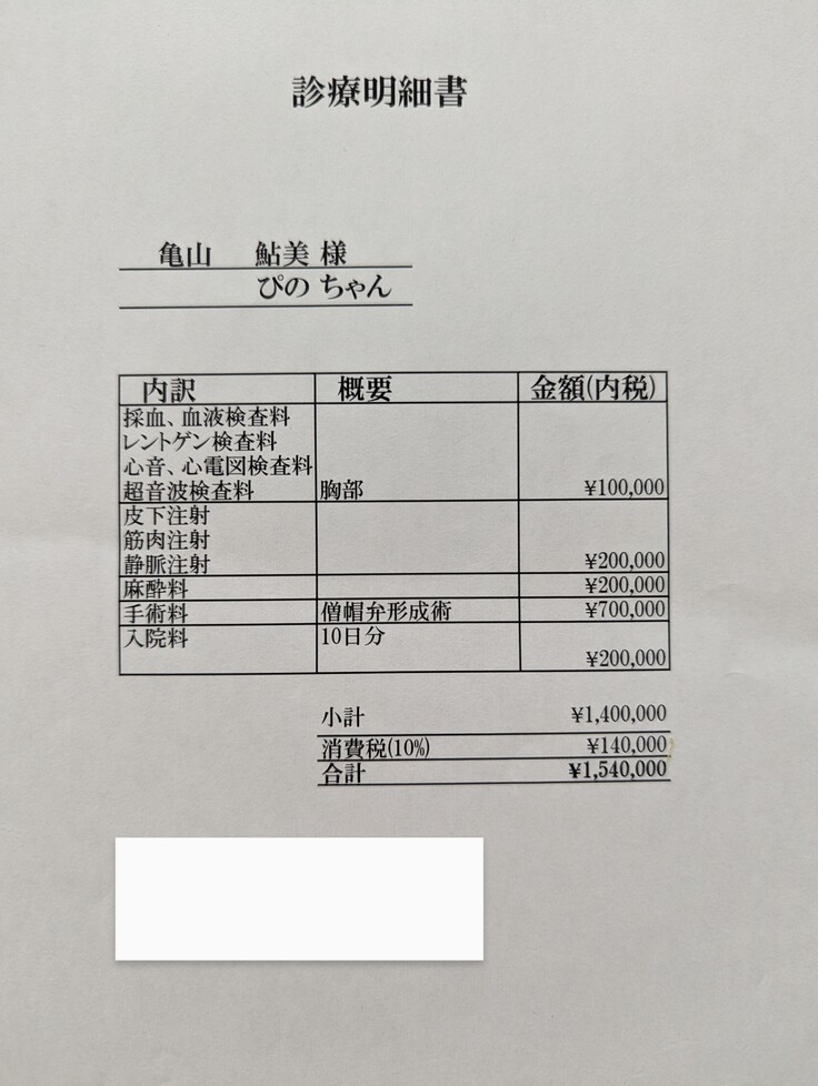 病院から出していただきました手術費用の明細書を掲載させて頂きます🙇♀️