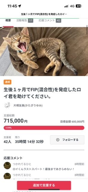 7月27日をもちまして代理支援分を入金させていただき、無事にクラウドファンディング達成致しました。