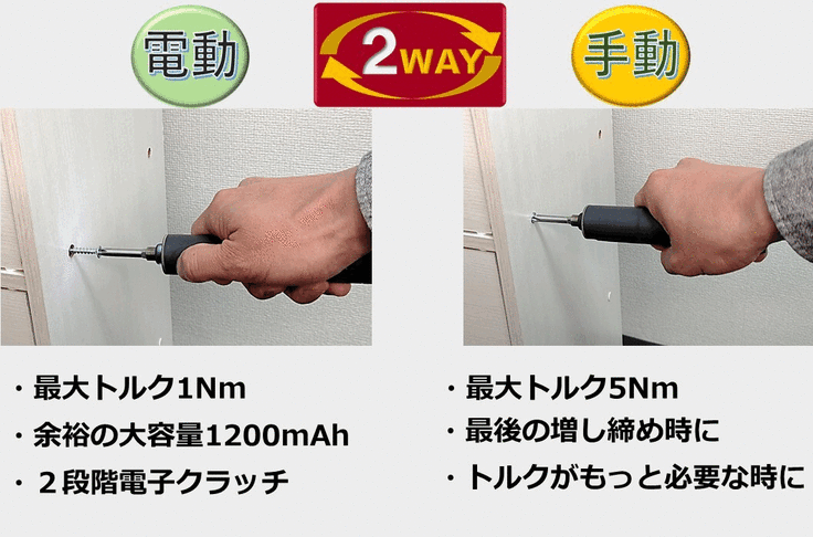 ネジ締め作業はこれで完結! 電動&手動2WAYスクリュードライバー