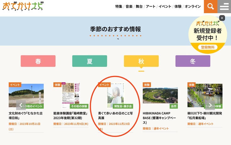 この度、4年ゼミが開催予定の「青くて赤いあの日のこと 写真展」が、アクロス福岡様の「おでかけナビ」のイベント情報に取り上げて頂きました!