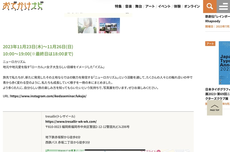 アクロス福岡様の「おでかけナビ」に写真展の紹介を取り上げて頂きました!