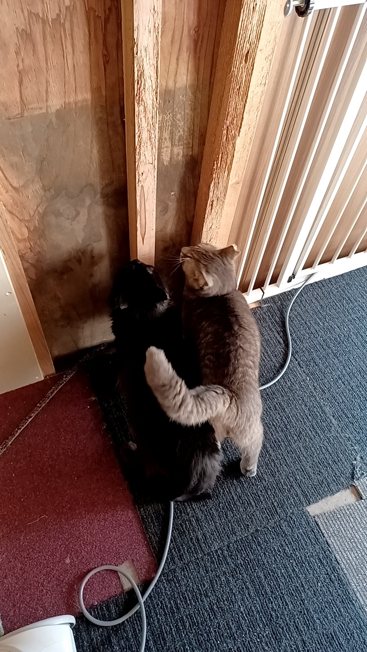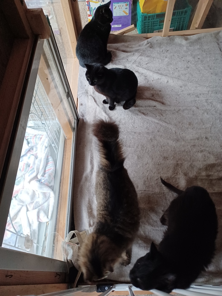 床も終わり網戸も張り替え 脱走防止対策も出来きキャットタワー ケージも設置し