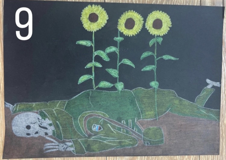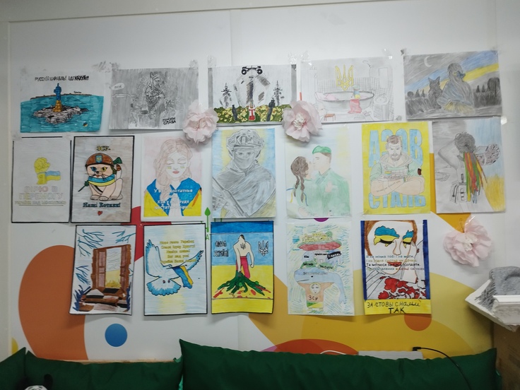ドネツクから避難してきたタチヤーナさんは、戦争で心に傷を負い、占領下で生きてきた子どもたちが絵を描き、その絵を人々に見せることで、やがて安心感を得る様子を見てきました。そこで避難民たちが暮らす仮設住宅でアートセラピーの活動を始めたのです。それ以来、マリウポリから逃げてきた避難民の女の子らが生き生きと絵を描くようになりました。