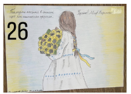 私がこの絵を選んだのは、綺麗なウクライナカラーと優しい雰囲気の中にも凛とした背中が素敵だと思ったからです。
