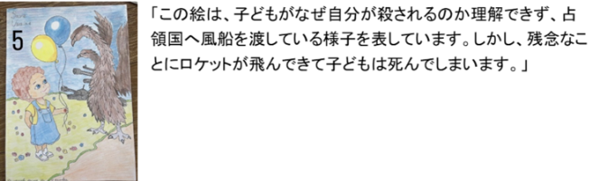 風船を手渡す優しい女の子の絵でありながら、武器や戦車も描かれていて、女の子が死んでしまう悲しくて理不尽な現在のウクライナの状況を表すような絵だとも感じて涙が出そうになります。ウクライナに1日も早く戦争の勝利が来て、二度と侵略戦争を経験しなくていい世界になってほしいです。