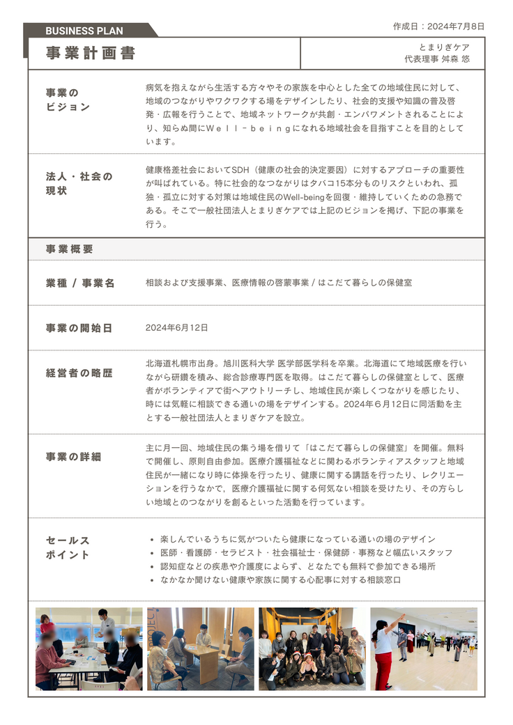「はこだて暮らしの保健室」として活動を始めてから1年が経過し、これまでに400人以上の方々にご参加いただきました。地域の方々や様々な職種の方々に認知していただくことができ、活動の意義を実感しています。これも全て、支援してくださった皆様のおかげです。心より感謝申し上げます。