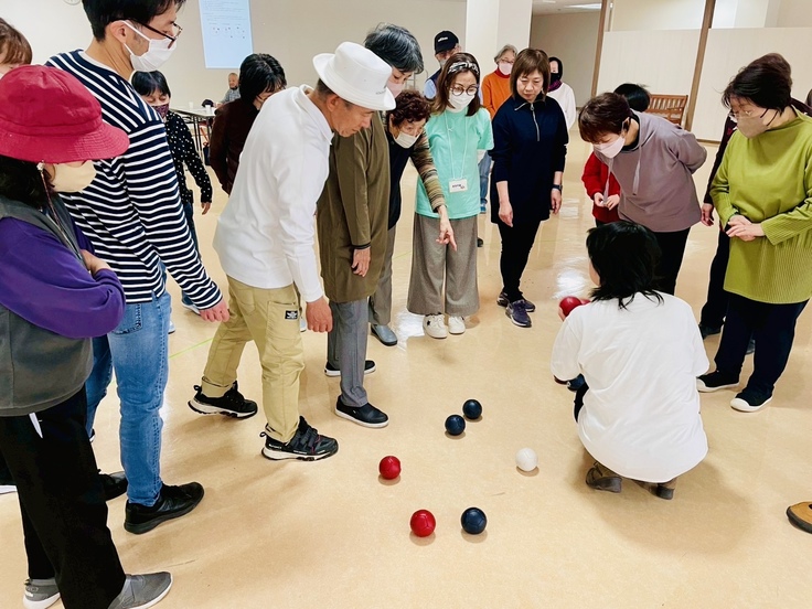 ボッチャは本当に奥が深いスポーツで、私たちスタッフも参加して大いに楽しみました。特に素晴らしいのは、ADLが低下していても、車椅子に座った状態でプレイでき、手に障がいがある方は足で投げるなど、様々な工夫ができる点。本当に幅広い方が一緒に楽しめるスポーツだと実感しました。