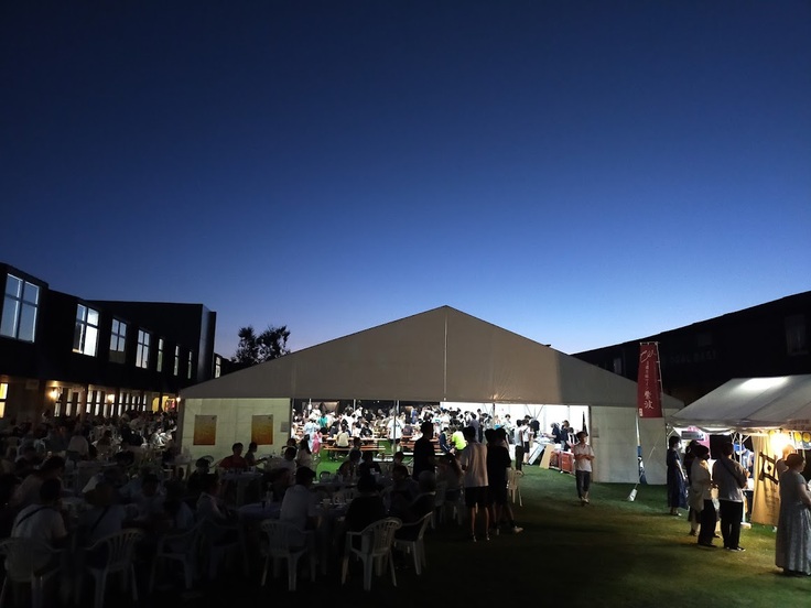 ある年の祭りでは、お客様として参加していたヴァイオリン奏者が、おもむろに楽器をケースから取り出し、人々が歓談するテーブルを巡って演奏する場面もありました。また2019年は「ちょっと先の未来を愉しむ」をコンセプトに、エコ食器利用(イベントごみ削減)を図りながら、約30の飲食店に出店頂くイベントとなりました。