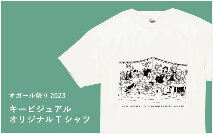 「オガール祭り2023オリジナルTシャツを着て、今年こそたくさんの人と「乾杯」をしよう!」