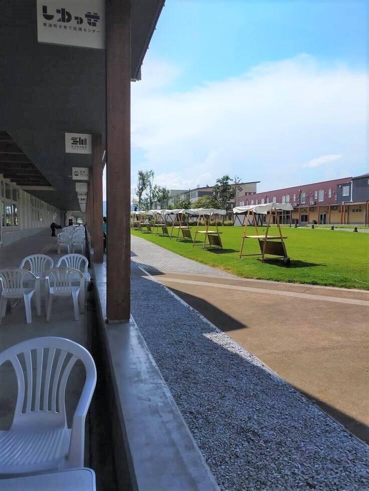 舞台となった「オガール広場」は、エリアの中心に位置し、緑があふれ随所に東屋が配置されたオガールプロジェクトの核とも呼ぶべき場所です。これから先のコミュニティのあり方を思い描き、来訪者がお互いに「別々のことをしながらも視野には入っている」時間を過ごすことを念頭に、デザインされた広場です。
