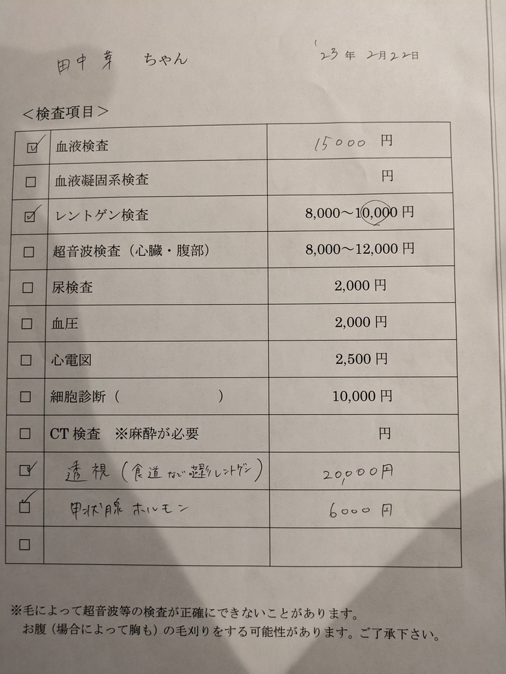 実際、検査前に6万円と説明を受けていましたが支払いは8万円でした。