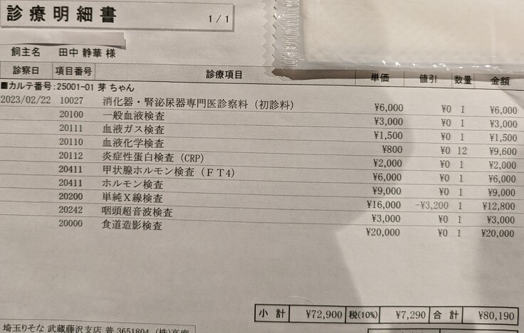 万が一、メイが亡くなってしまった場合、いただいた支援金については返金はせずこれまでの治療費・検査費用に当てさせていただきます。
