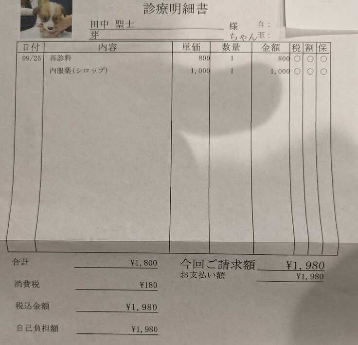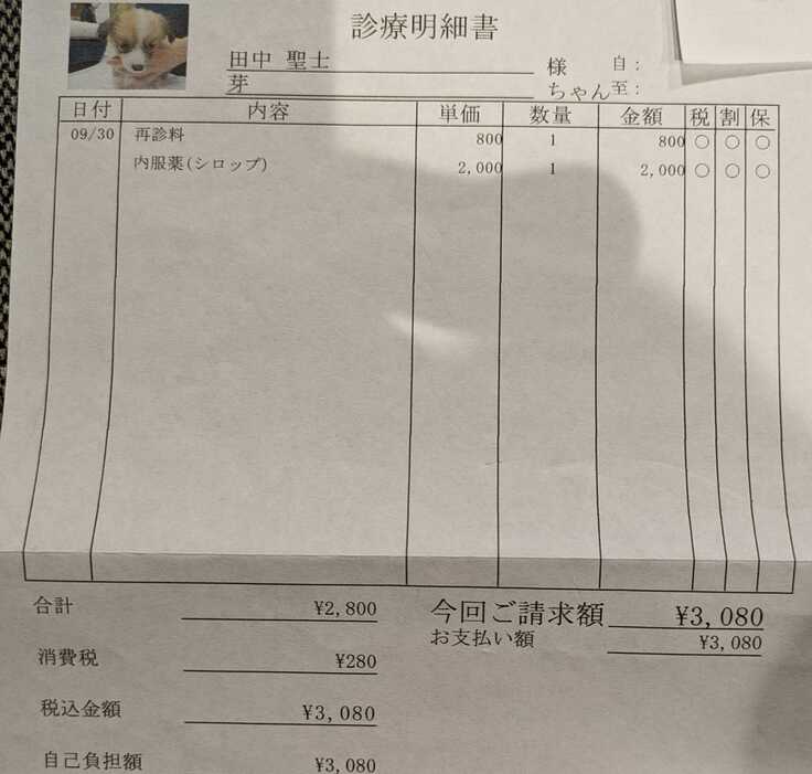 飼い主名が私と異なるのは受付を主人がしたためです。