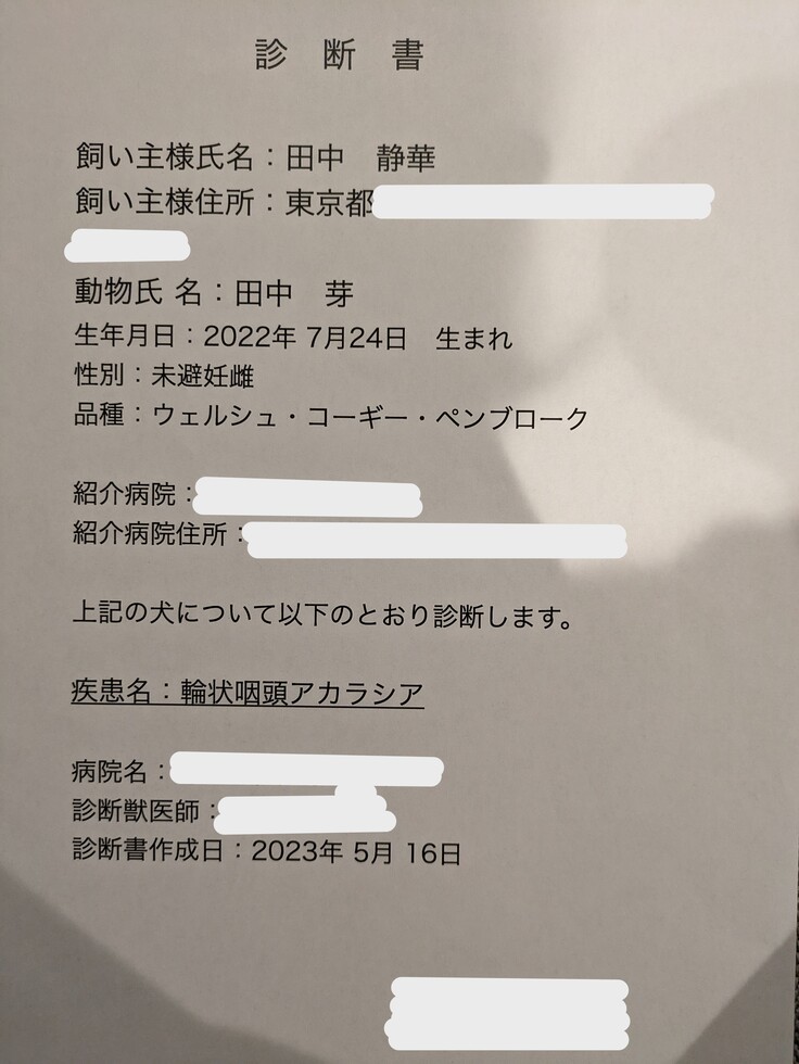 ペット保険はブリーダーさんから症状があるため入れないと説明され、加入できませんでした。