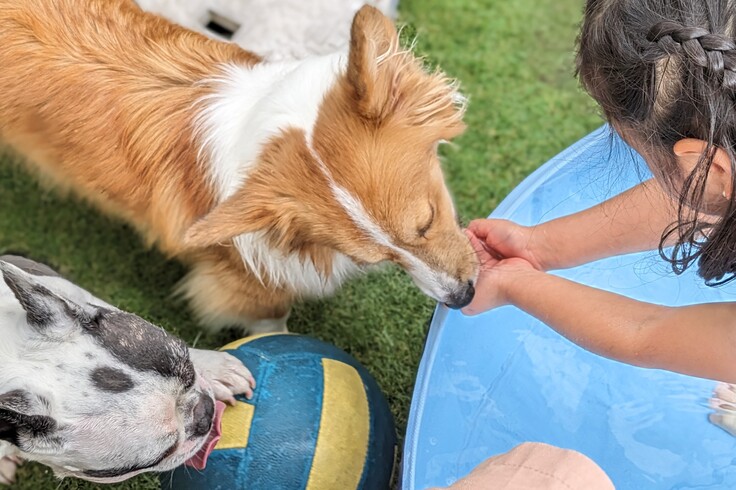 暑い日が続いていますね。姉妹たちにプールを用意しました。