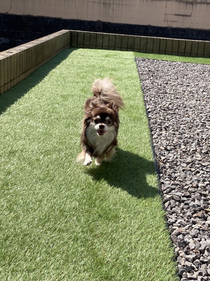 お散歩やお友達ワンコとの遊びは控え、お庭で少し日向ぼっこや歩かせたりする日々を送っています。