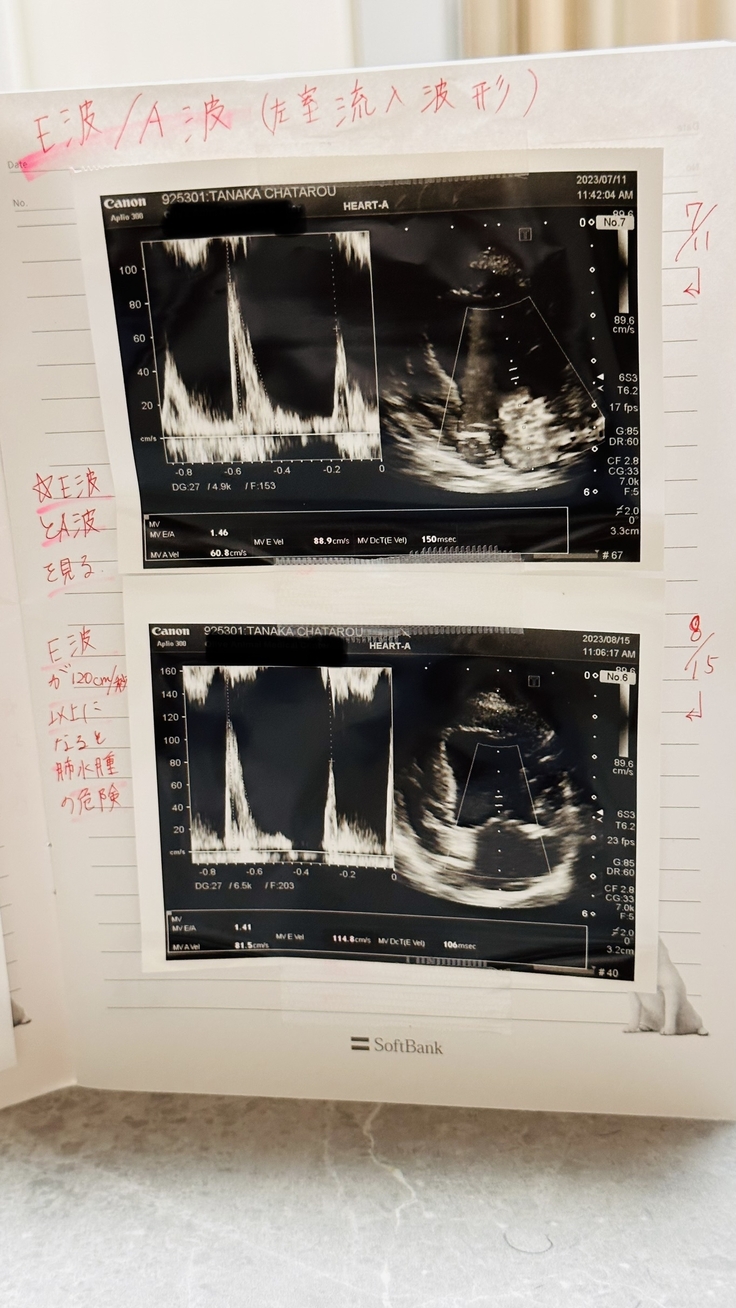 ただ、E波の数値が少し高めなため、いつ120を超え肺水腫を引き起こしてもおかしくはないため、気を抜けない状態に変わりはありません。