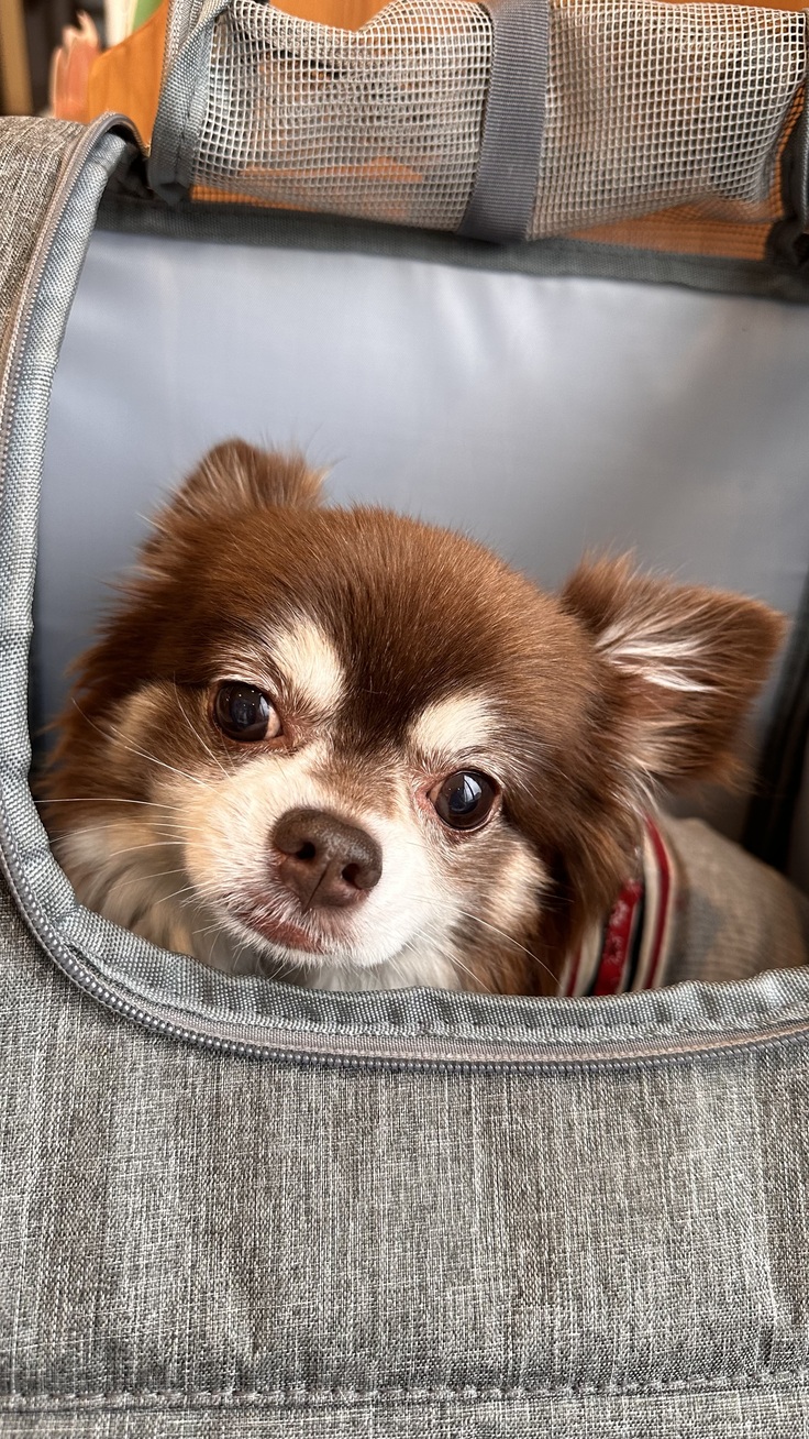 雨の中☔️茶太郎は絶対歩きたがらないですが、バッグに入ってお顔だけ出してる状態なので、病院に着くまでは余裕の表情だったのに、病院に着いた途端ガクブル🫨になり、軽く震度1くらいあったかも😅