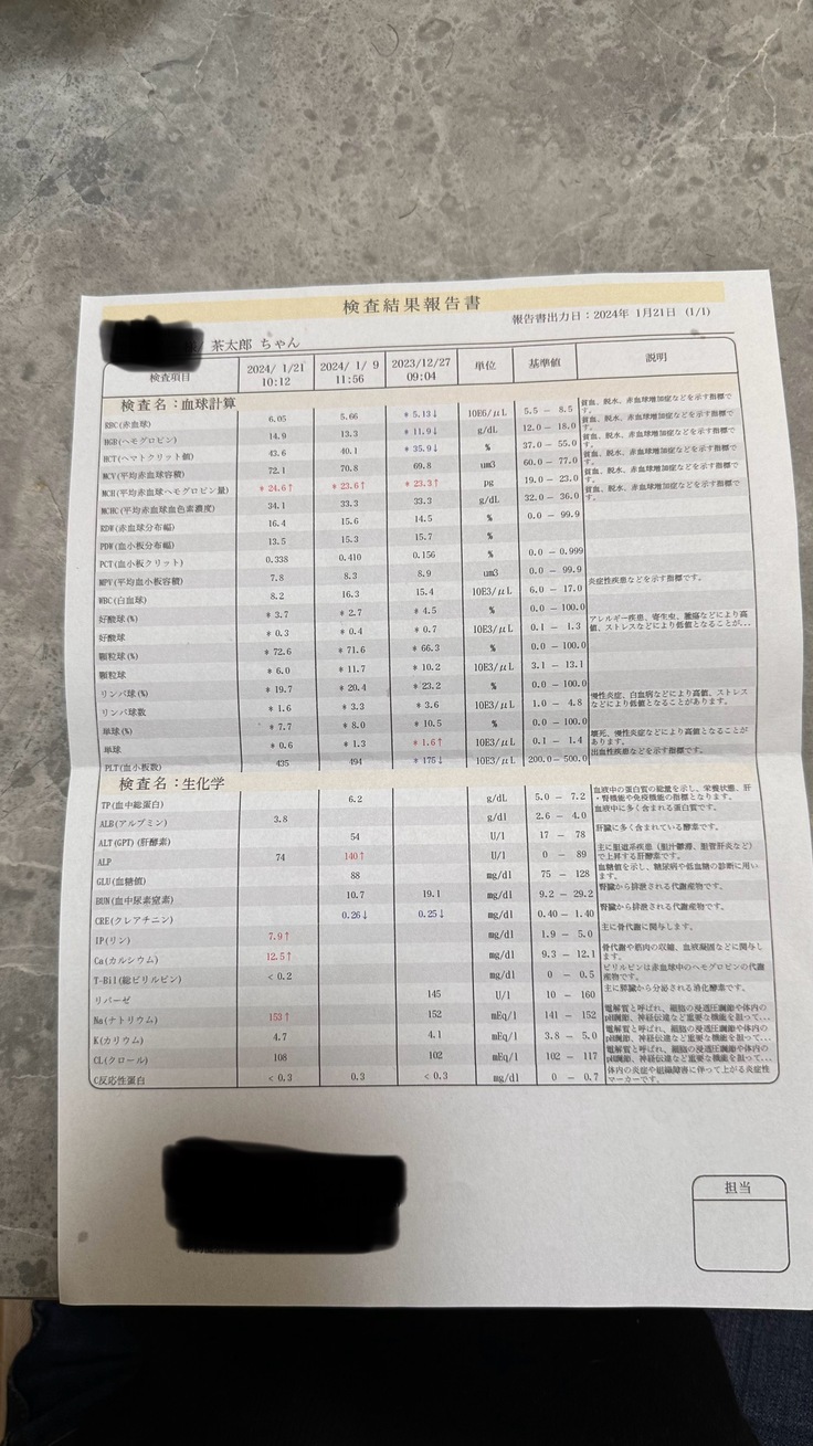 ただ、体重が退院時に減っていたこともあり体重増量キャンペーンを開催し、ご飯を少し多めにあげていた為か、少しリンの数値、カルシウムの数値が血液検査で高めに出てしまいました💦