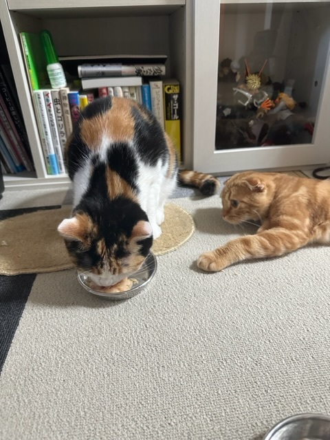 自分のを食べ終えた瞬間、むぎの分を奪いにいってました💦