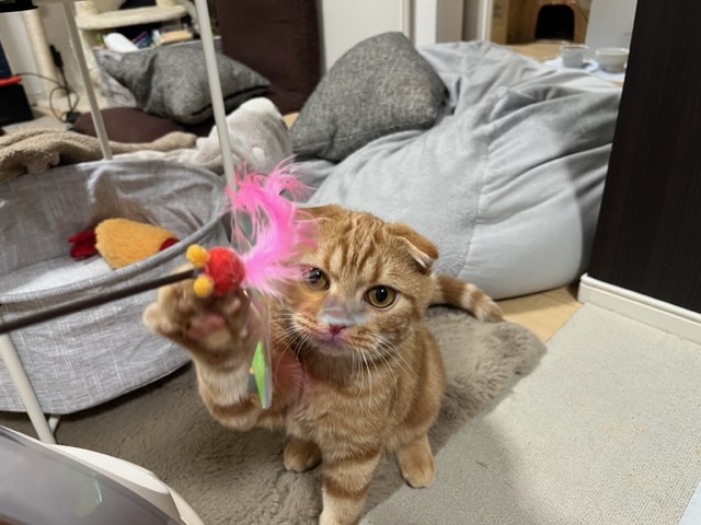 少しおもちゃで遊ばせました🐈