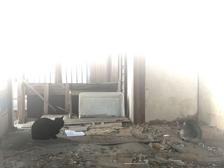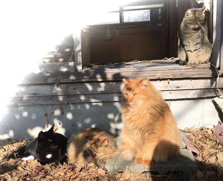 寒さを防ぐものは何もないのに、猫たちはやはり離れがたいのです。