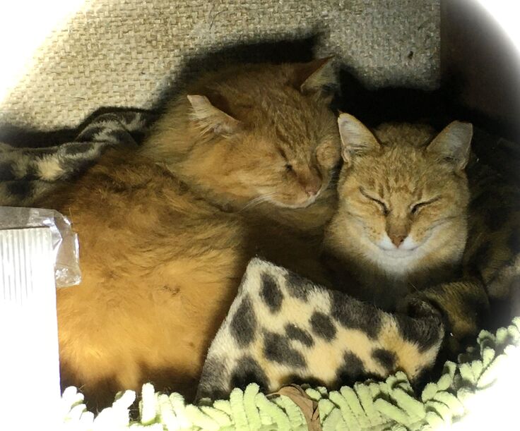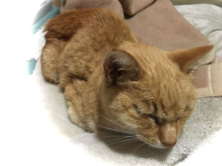 年末から激やせしたオレンジは、7年ぶりの診察と血液検査の結果も異常値はなかったけれども、夜は避難所でぬくぬくと過ごしてもらっています。