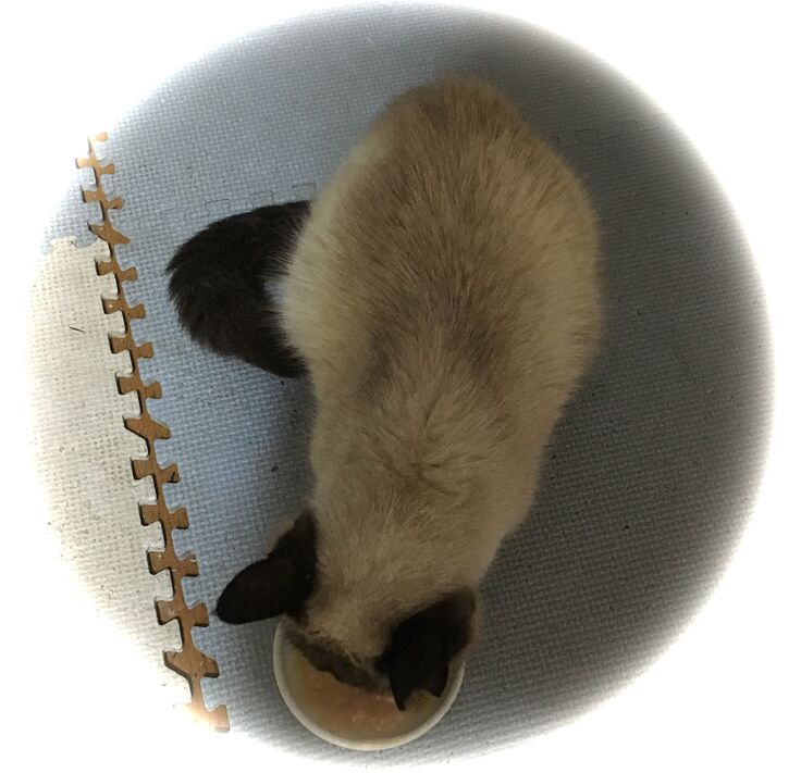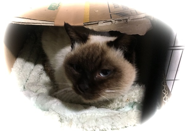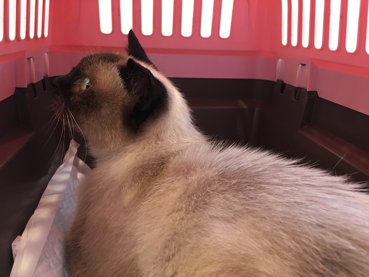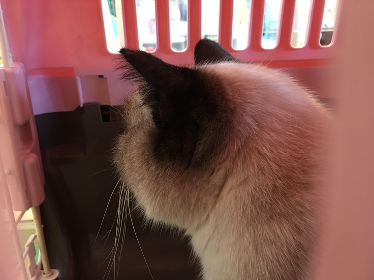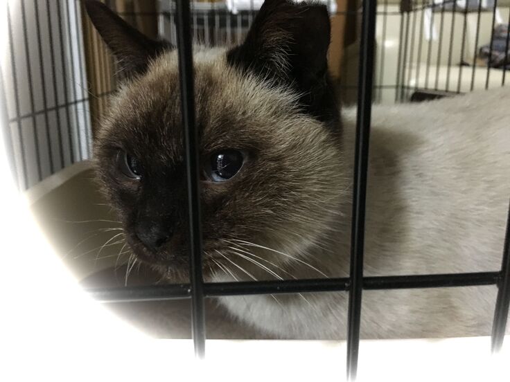 シャムたんはおうち内の生活にすぐに慣れ、ケージに入っても慌てることはまったくありませんでした。