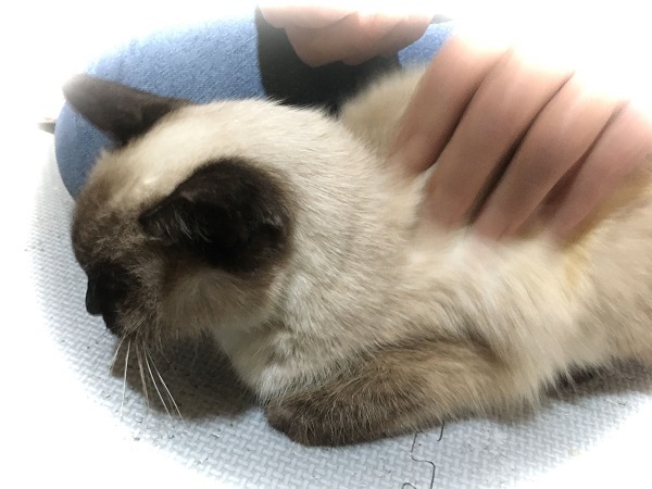 点滴の前にしばらくマッサージをしてやると、リラックスして暴れなくなりました。