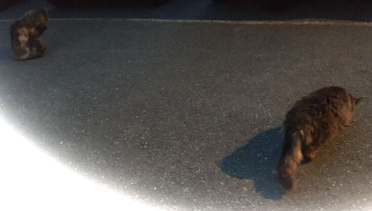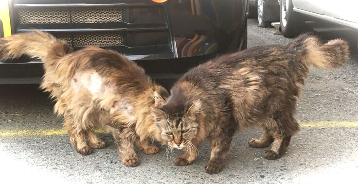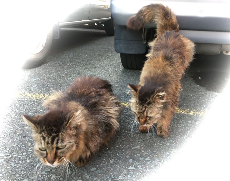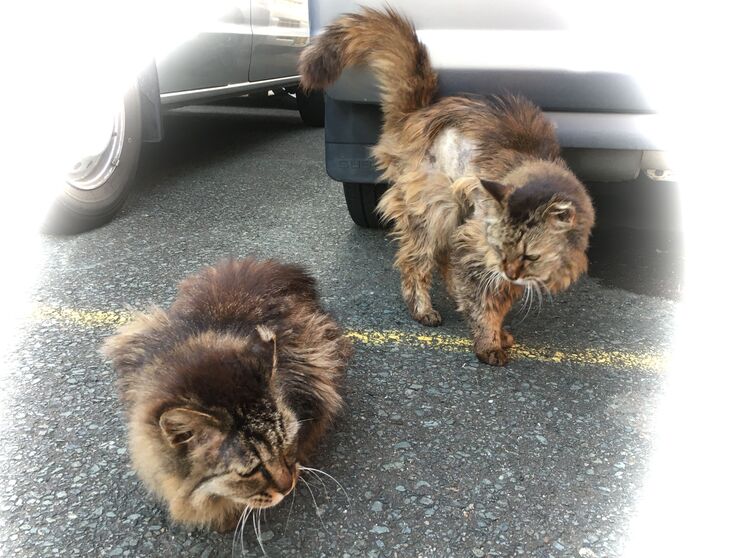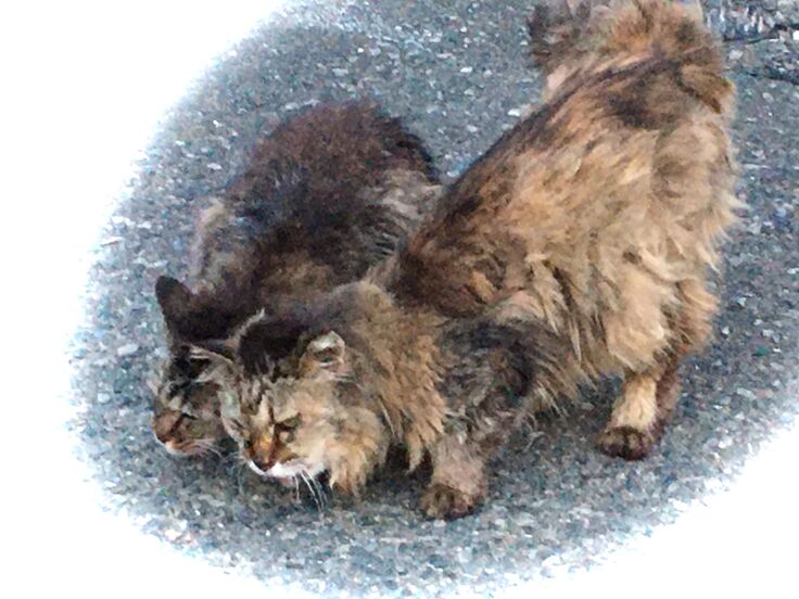 単独行動と言われますが、猫同士の社会性はあるんです。(黒っぽい方がステルスモップ)