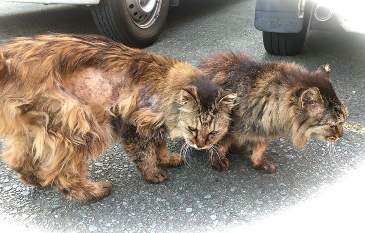 一緒にいた茶々モップは9月現在、激やせしており、少しでも多く食べるよう見守っています。