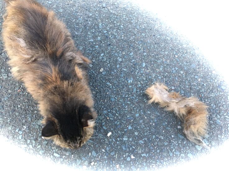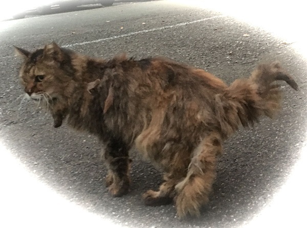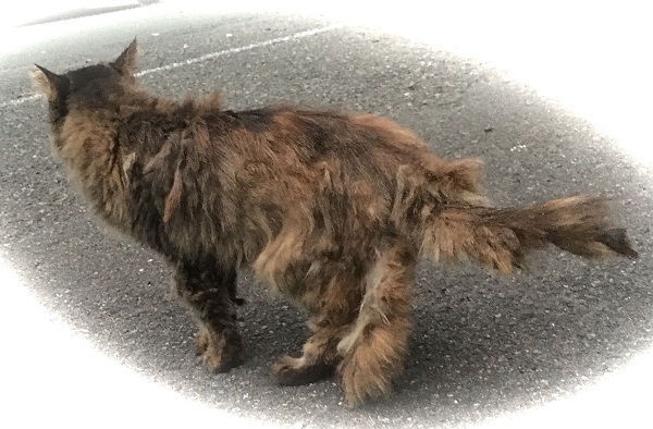 茶と黒の長毛で全身ふさふさ、左耳にカットまであったのに・・・
