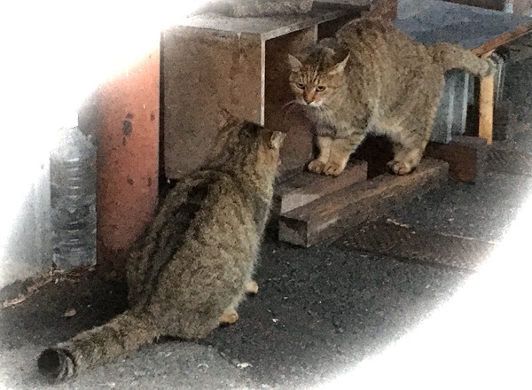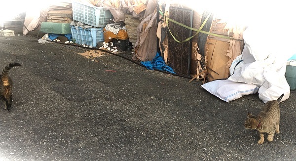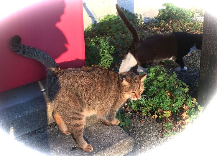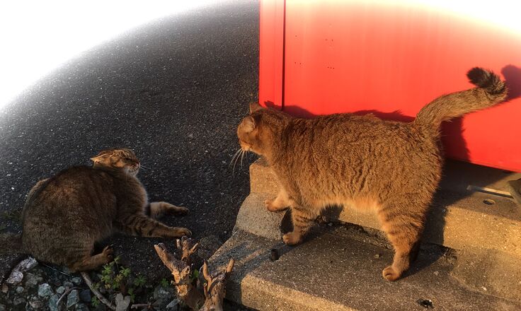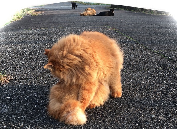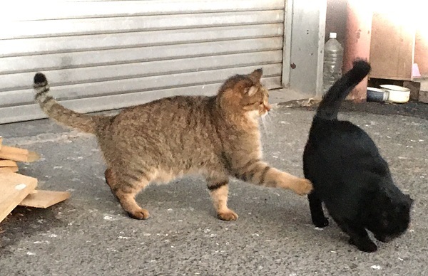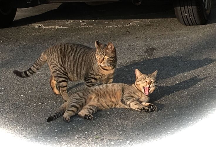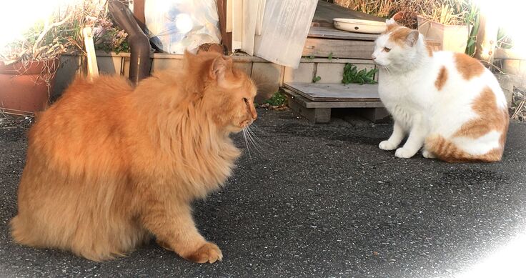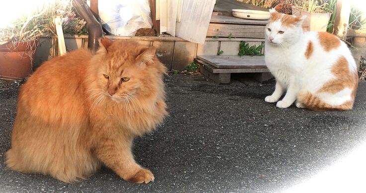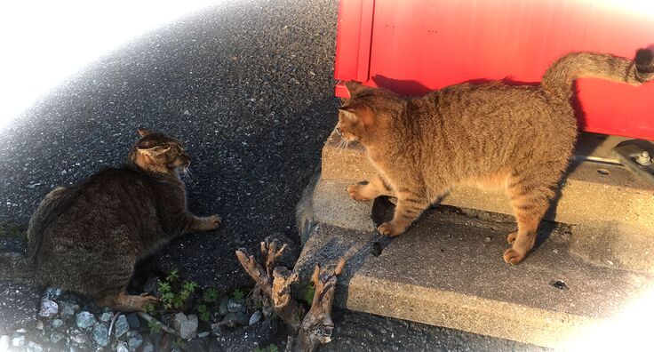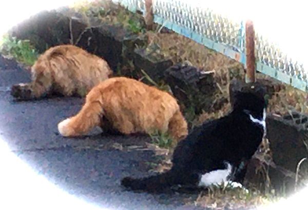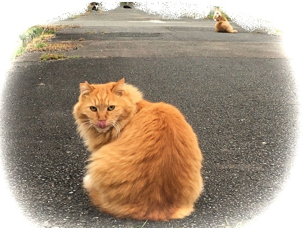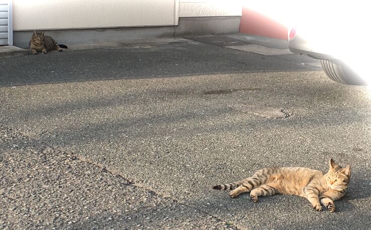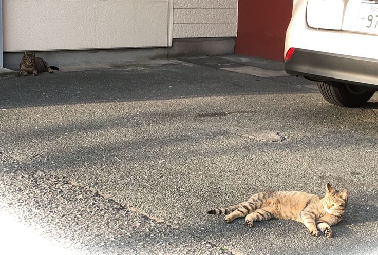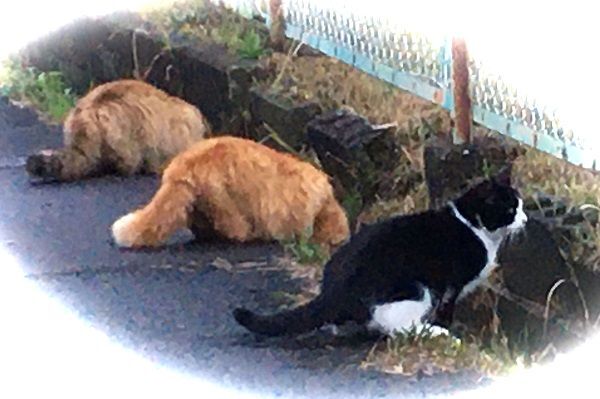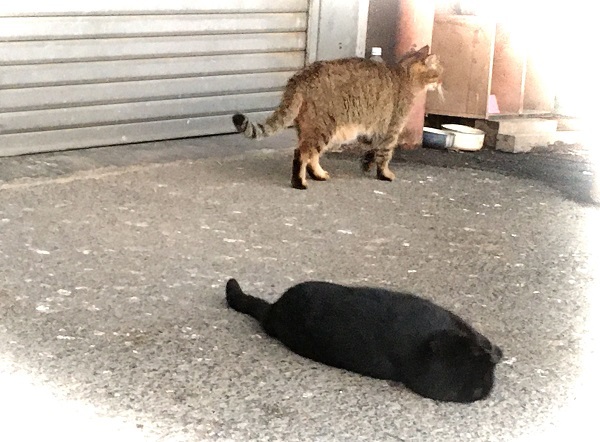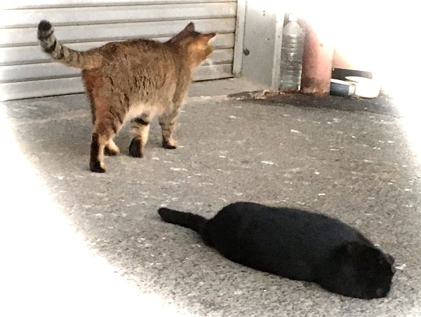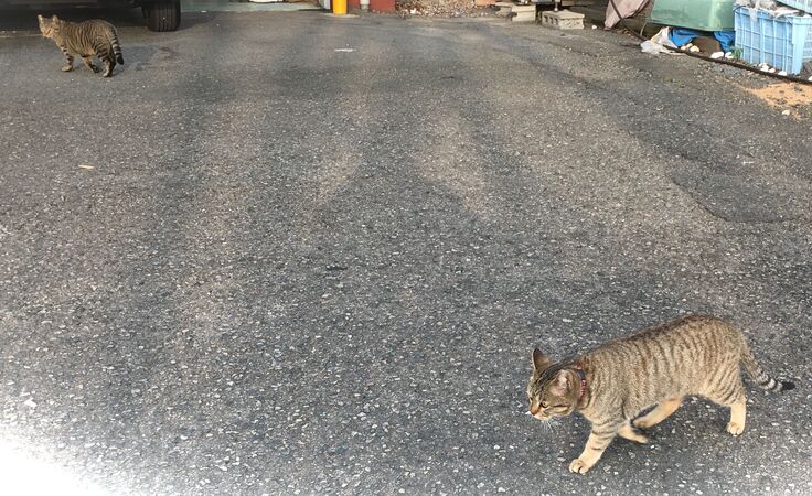 18:42 やまだ電機周りで大らかな茶トラと器の小さい子を発見。