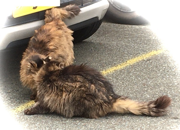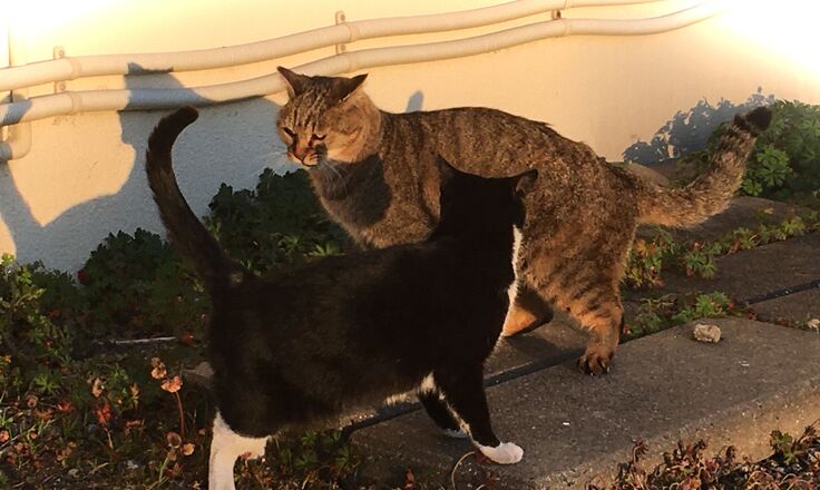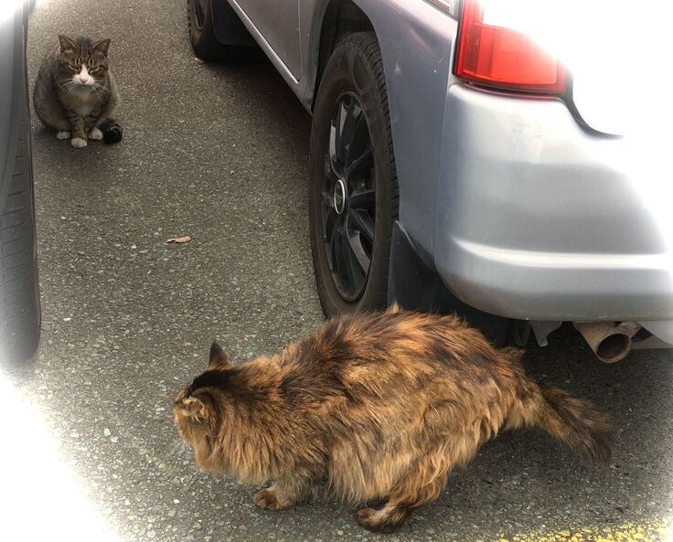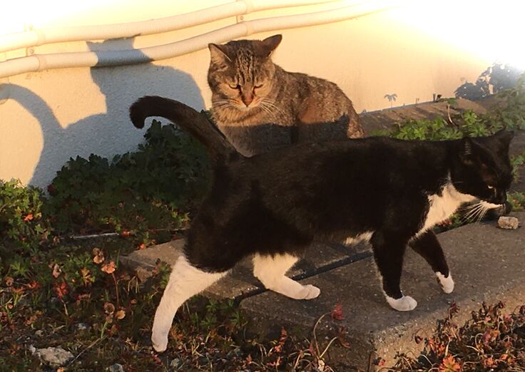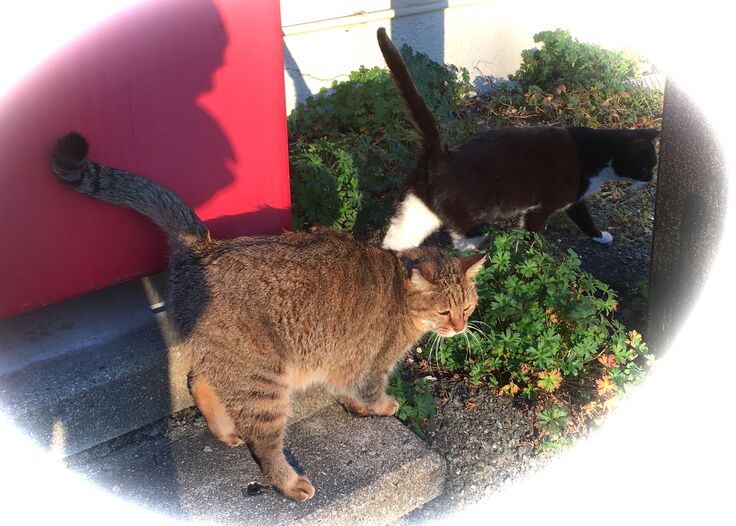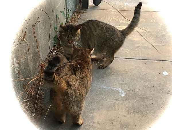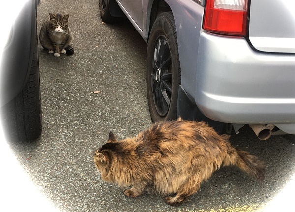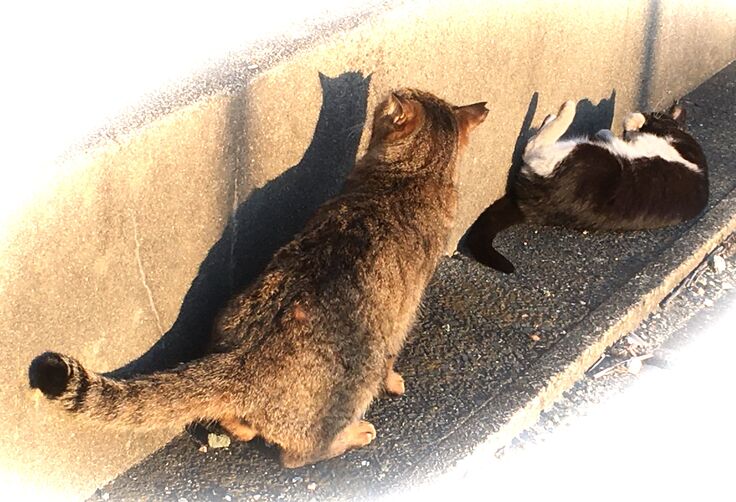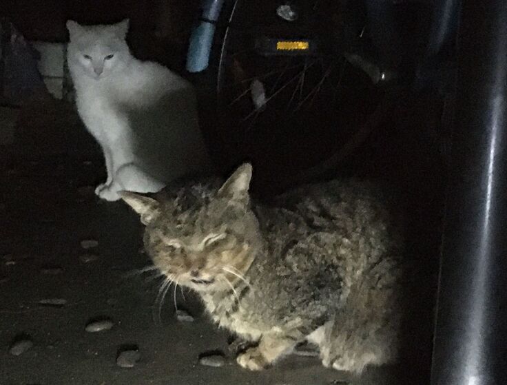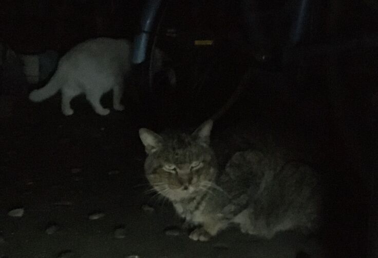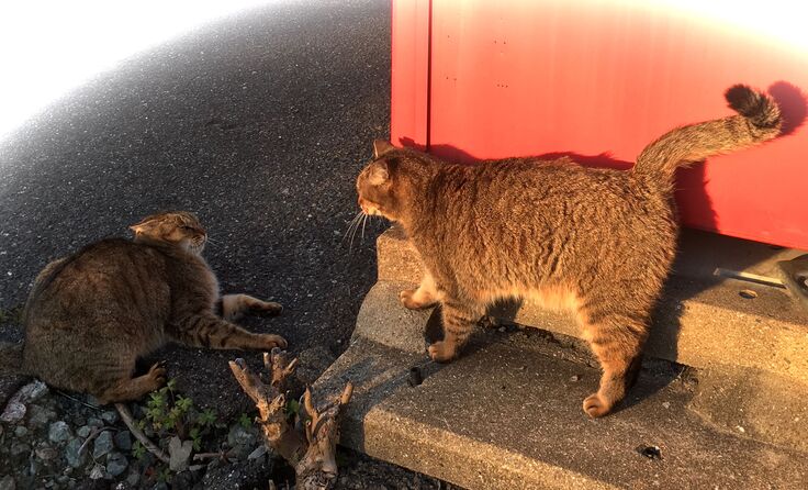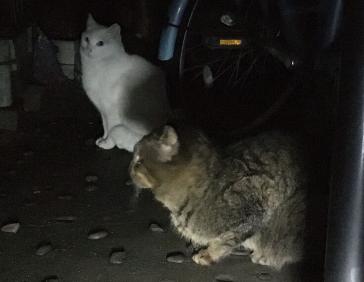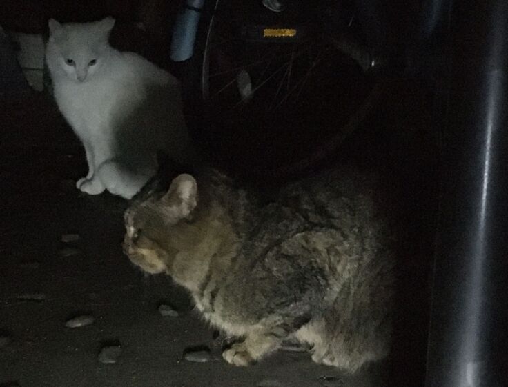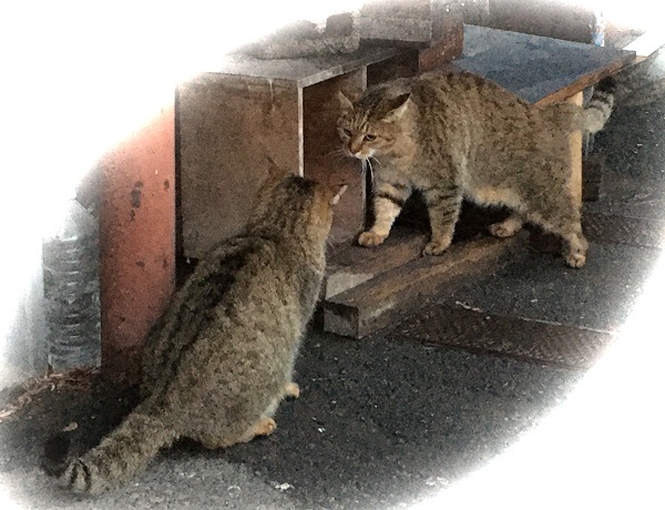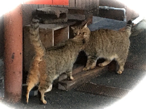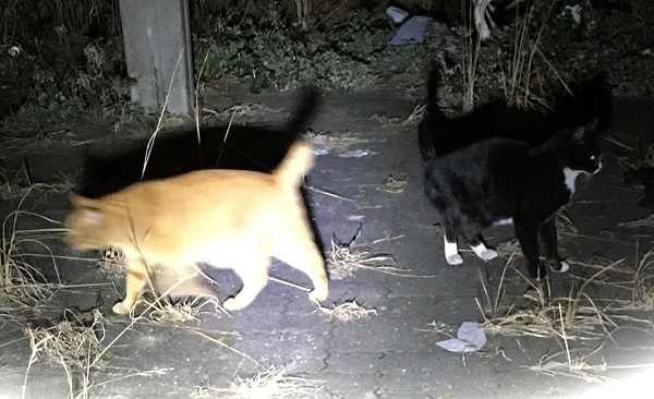 18:42 やまだ電機周りで大らかな茶トラと器の小さい子を発見。