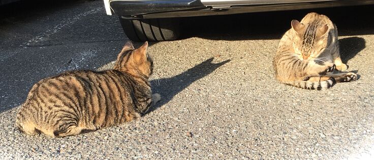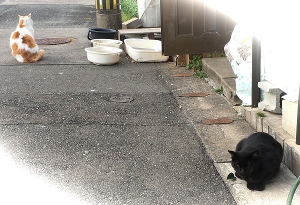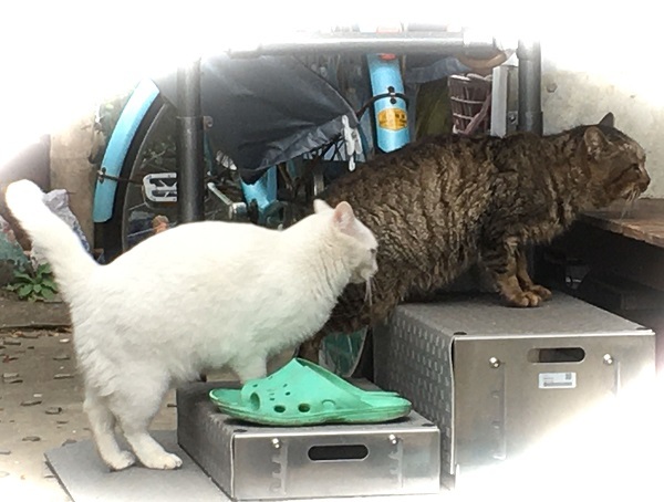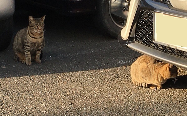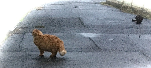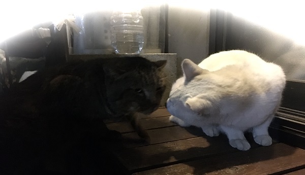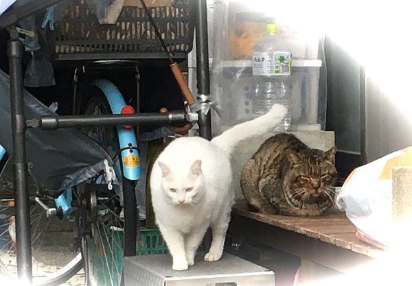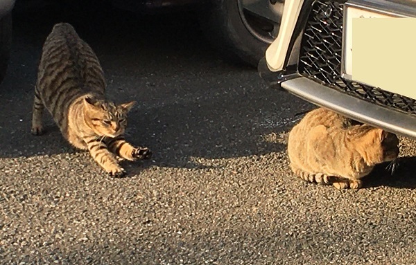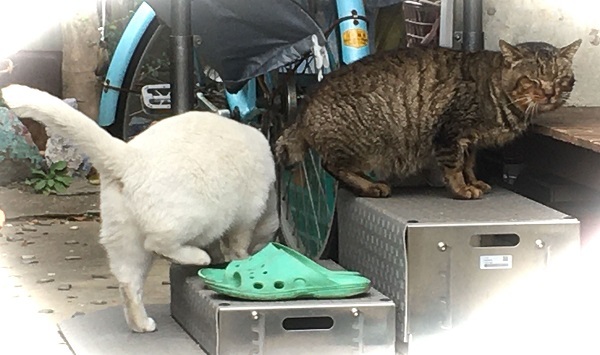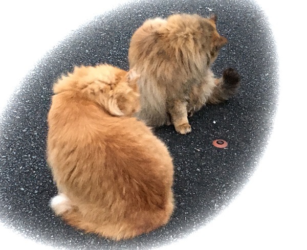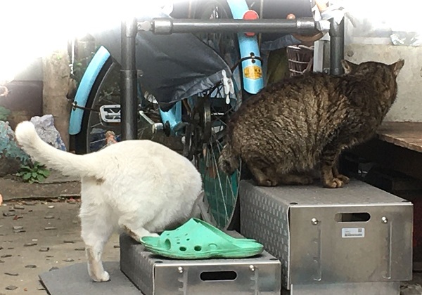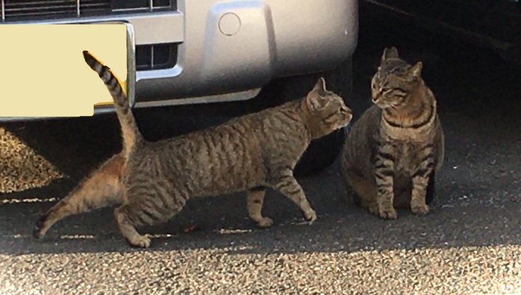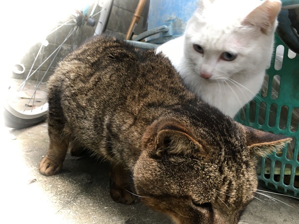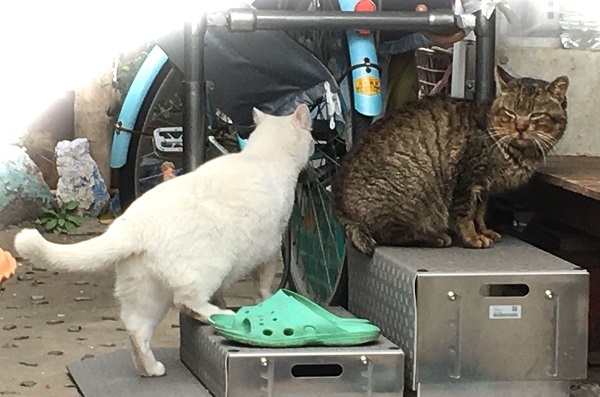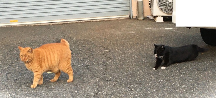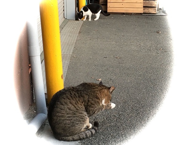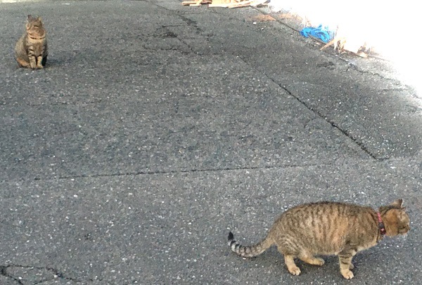17:52 やまだ電機にて。大らかな茶トラと器の小さい子。